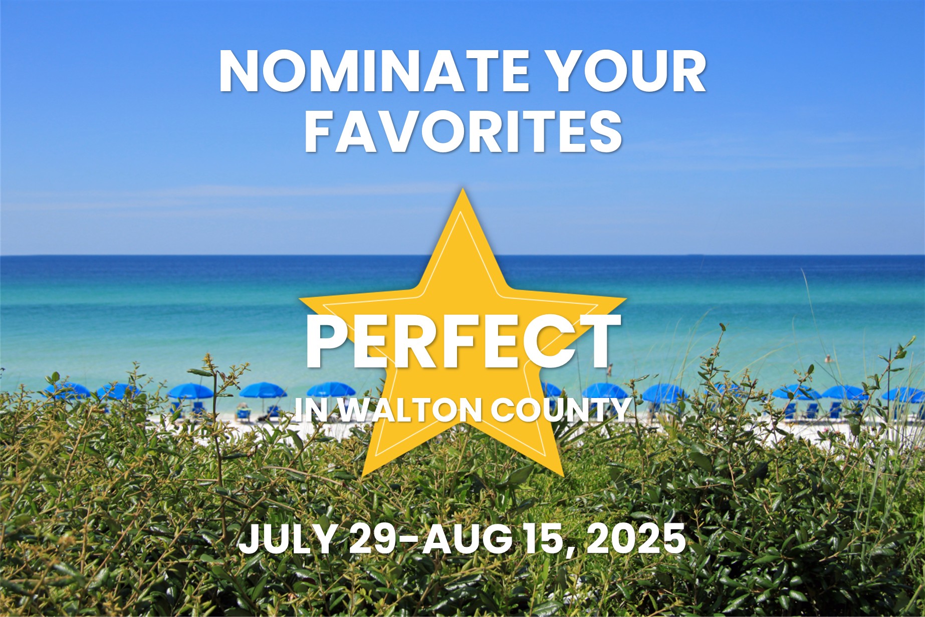 It's that time again—nominations for the 2026 Perfect in Walton County Awards open July 29 through August 15! This annual tradition celebrates the very best of Walton County, from favorite beaches and boutiques to restaurants, photographers, musicians, and more.