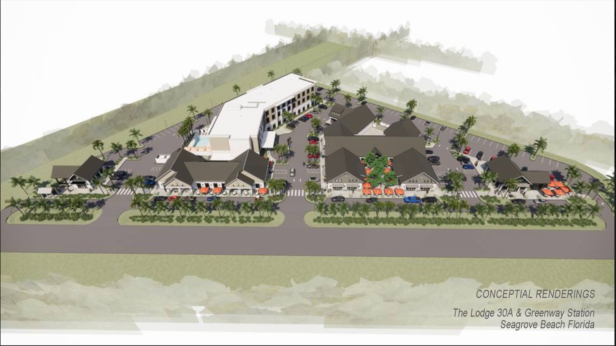 Plans for the The Lodge 30A include a 3-story modern design with a fitness center and outside pool amenities to be included.