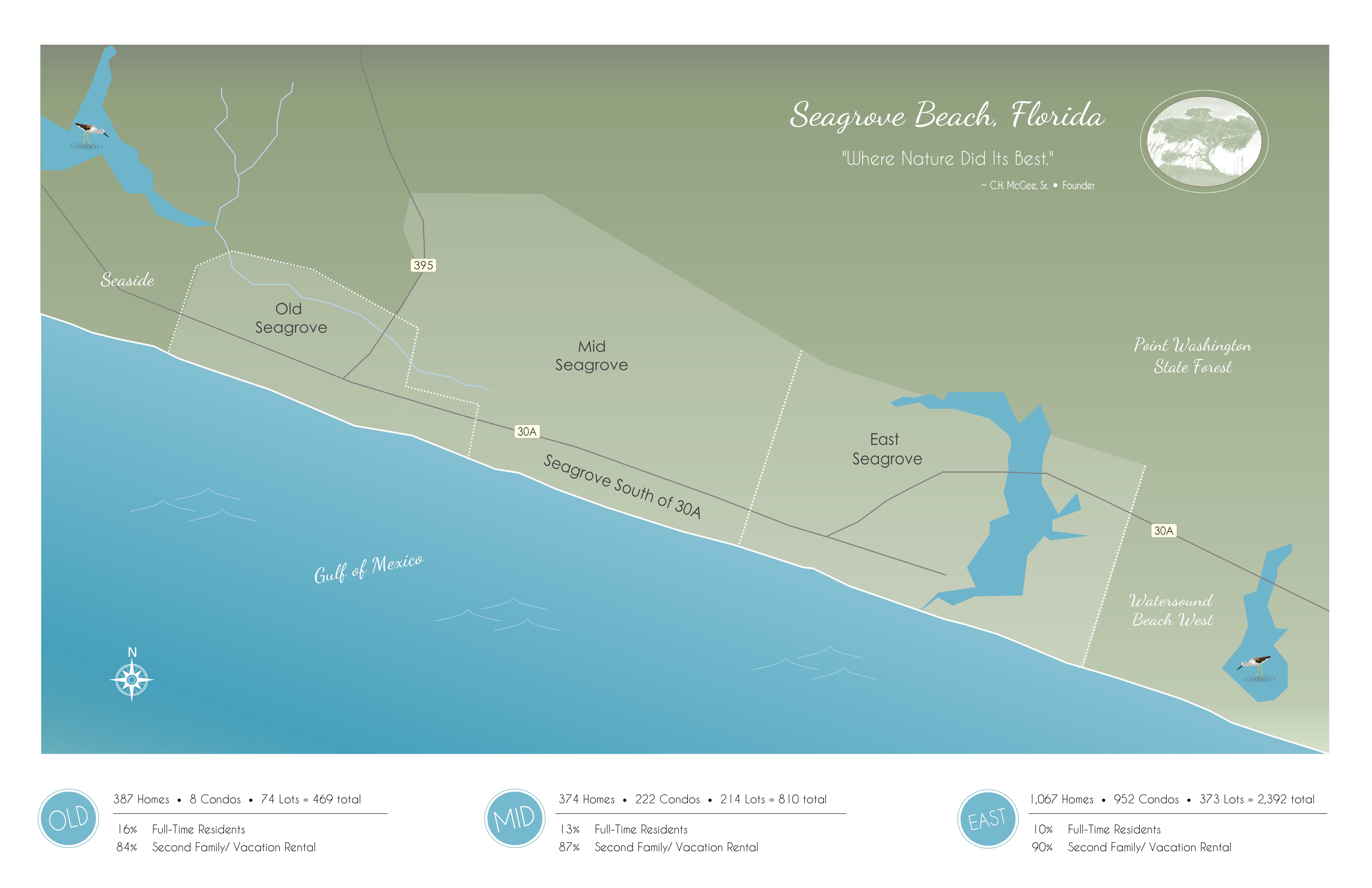 Seagrove Beach, Florida, has been drawing families with its simple and genuine beach lifestyle for generations. In the words of its Founder, CH McGee, Seagrove is "where mother nature did her best." The community was founded in the late 1940s by McGee and is known for its canopies of well-preserved nature of oak, hickory, and magnolia trees.