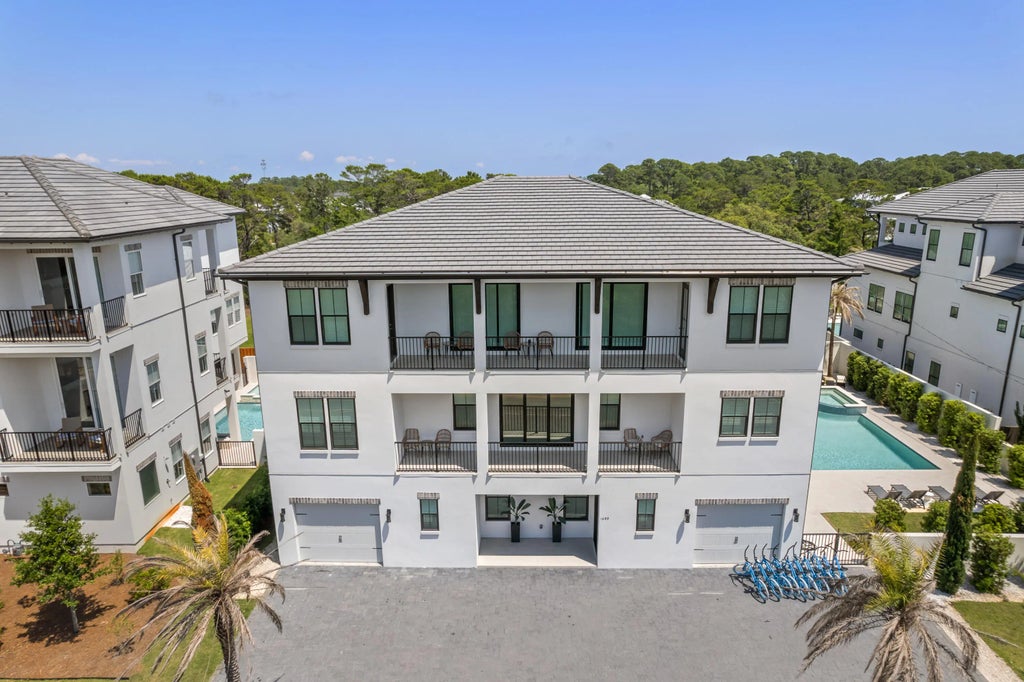 Welcome to 1683 S County Highway 393, a three-story haven, nestled just a short stroll from the serene Ed Walline Public Beach Access, offers an unmatched blend of comfort and sophistication.Featuring eight primary bedrooms, each with its own ensuite bathroom, and a total of nine bathrooms, this home ensures privacy and convenience for all residents and guests. Spanning 6,588 square feet, the interior space is meticulously designed to accommodate a large family or group, with room for everyone to find their own corner of paradise.The private backyard is a retreat in itself, boasting a large heated pool and spa, complemented by an outdoor entertainment and lounge area that promises countless evenings of relaxation and social gatherings. Inside, a theater that comfortably seats six invites you to indulge in cinematic experiences, while an indoor recreation area with a pool table provides endless entertainment options. Modern conveniences abound, with an elevator ensuring easy access to all three levels, while ample parking space for up to eight vehicles caters to your guests' needs. The full kitchen is a chef's dream, equipped with two refrigerators and two dishwashers, making meal preparation and clean-up a breeze.