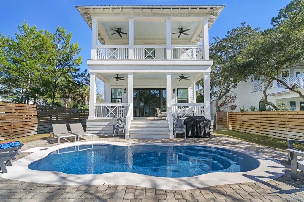 Your Dream Getaway Awaits- Welcome to your perfect vacation retreat, 'Good Thyme', in Seagrove Beach with a heated pool! This spacious, beautifully appointed 30A beach house offers everything you need for a luxurious and relaxing getaway. With 4 bedrooms, a dedicated bunk room, and 4.5 bathrooms, there's plenty of room for the whole group to enjoy. Key features: open floor plan, 2-car garage, extra parking, easily accommodates 14, short walk to Eastern Lake and the beach, fully furnished, two primary suites- 1 on each floor, two laundry rooms- 1 on each floor, several covered porches, EV charging and more.
