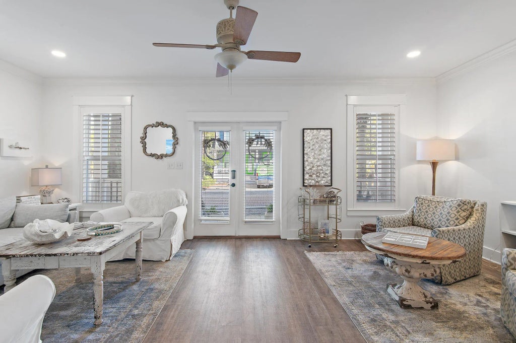 Welcome to your beautifully reimagined coastal retreat in the heart of Seacrest Beach, ideally located between Rosemary Beach and Alys Beach along the iconic 30A corridor. This fully renovated home blends modern luxury with timeless coastal charm, offering an inviting open-concept design perfect for both entertaining and everyday living. The brand-new kitchen showcases quartz countertops, a striking white-and-gold hexagon backsplash, and elegant gold-tone accents on the farmhouse sink and hardware. Freshly painted inside and out, the home features all-new flooring, updated bathrooms, and carefully curated designer details throughout. The main level includes a spacious guest suite, providing the ease of single-levelliving. Upstairs, the serene primary suit offers a king bed, a cozy sitting area, and a spa-inspired en suite with a soaking tub, walk-in shower, double quartz vanities, and a makeup station. An additional guest bedroom and a fun bunk room share a refreshed Jack-and-Jill bath, while the expansive 24-foot balcony creates a tranquil outdoor retreat. The exterior is equally impressive, with covered porches on both levels, a rare covered carport, and a private rear terrace ideal for grilling, bike storage, or relaxing on a shaded swing. Residents of Seacrest Beach enjoy premier amenities including a 12,000-square-foot resort-style pool, scenic walking trails, community parks, and a tram to a private stretch of sugar-white sand. Offered fully furnished and move-in ready, this property is perfect as a primary residence, vacation getaway, or income-producing rental. Don't miss the opportunity to own this stunning coastal haven in one of 30A's most coveted communities.
