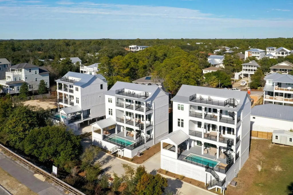 Here is your chance to own TWO stunning, new homes located directly on 30A! Whether for yourself or to use as an income producing property, having a total of 10 bedrooms, PLUS two bunk bed rooms, and two private pools provides limitless options. With projections at upwards of $250k per house, renting these homes together would be a rental machine! Enjoy overlooking County Highway 30A from the back porch, with Gulf Glimpses from multiple spots at each house. To top it off, there are no assessment fees because there is NO HOA! Both of these homes are being sold fully furnished with top of line decor and finishes, a Chef's kitchen with luxury appliances, two washers/dryers, two living areas with a kitchenette on the pool deck as well as outdoor kitchen, it is an entertainer's dream.Only a short walk or bike ride to the beach and also to Gulf Place with several renowned restaurants shopping, and more. Make an appointment to see these homes today!