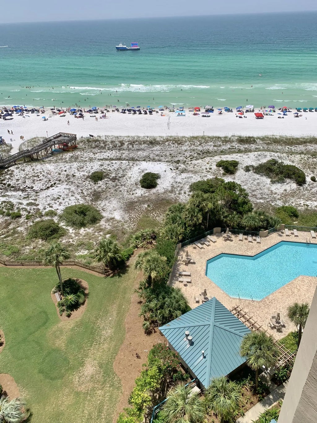 This 12th floor beautiful beachfront furnished condo has an abundance of light entering it from the 30 ft. of sliders facing the Gulf to the huge dining room window that sees the golf course and the bay. In addition to being rental-restricted, Southwinds features a private beach for the owners. The Master bedroom has sliders opening onto its private balcony and the king guest bedroom also has a balcony with views of the bay. The 3rd bedroom has bay views as well. The master bath has been updated with a frameless glass shower and quartz counter tops. It also has a window with a great view making the room feel bright and airy. The 2nd bath has been updated with quartz counter tops and a large tile back splash that surrounds the tub. The kitchen has been updated with stainless appliances.