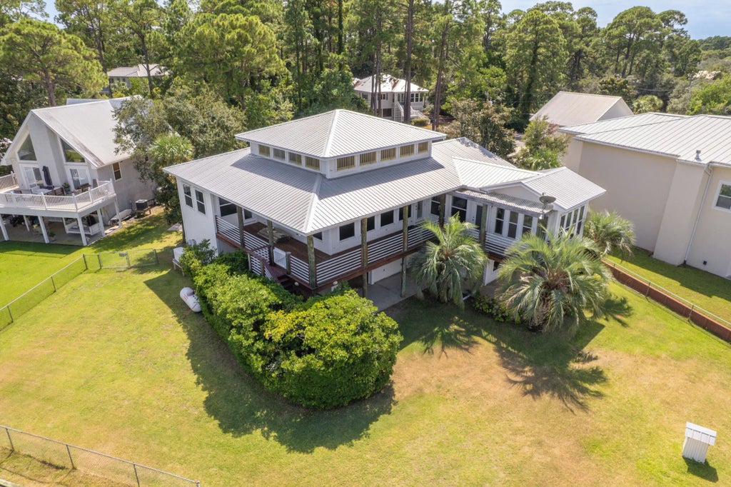 Live the dream in this spectacular Bay front oasis thoughtfully positioned on a rare double lot, where dazzling sunrises and sunsets light up the sky as dolphins glide past. Wraparound porches and patios offer breezy, shaded spaces to relax or entertain in true coastal style. The sun-filled main level features an open great room with panoramic views and access to a covered deck. An elevator makes daily living effortless. Private lower-level suite boasts a full kitchen/bath, spacious bedroom, and private patio--perfect for guests or extended family. A deep two-car garage with rear door offers ample storage for kayaks, paddle boards, or golf cart, plus workshop space. This home also has an emergency generator. Private dock features two boat lifts, including a covered lift with remote,a walkaround dock, and a fish cleaning station for the catch of the day. Paradise awaits!"