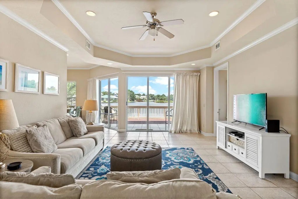 Rare opportunity to own a first-floor lakefront 3BR-3BA condo at Sandestin Resort with revenue potential of $50K! 2214 Crystal Cove Lane is a premier waterfront condo located in the Crystal Cove neighborhood at Sandestin Resort. The location is tucked away yet convenient to all that Sandestin has to offer. With 10 ft ceilings, this 3BR-3BA is flooded with natural sunlight and offers a spacious floor plan, a covered porch, and a sunny deck overlooking Crystal Lake. The comfy living area, updated kitchen, breakfast room, and primary bedroom all open through glass doors to the lakeside patio and deck. Both guest bedrooms offer adjoining full baths. There is a full-size laundry room, assigned parking, catch and release fishing, and access to a community swimming pool.The Sandestin beach resort amenities are available to property owners.