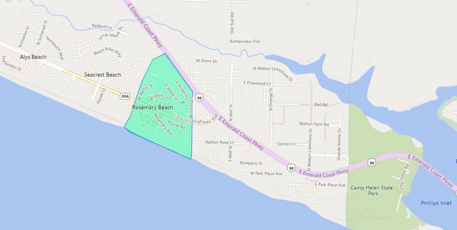 Rosemary Beach borders Seacrest Beach to the west and Inlet Beach to the East.